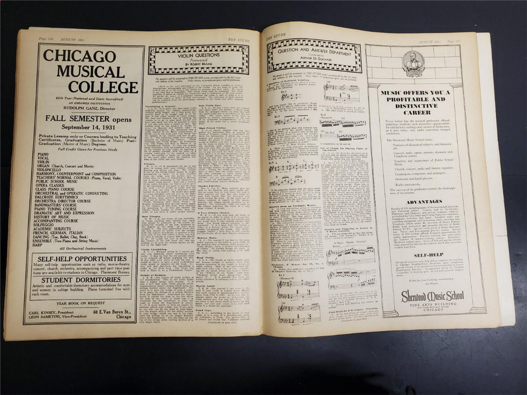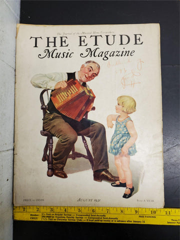 VTG 1931 Aug The Etude Sheet Music Journal Magazine Accordion Cover Collectible