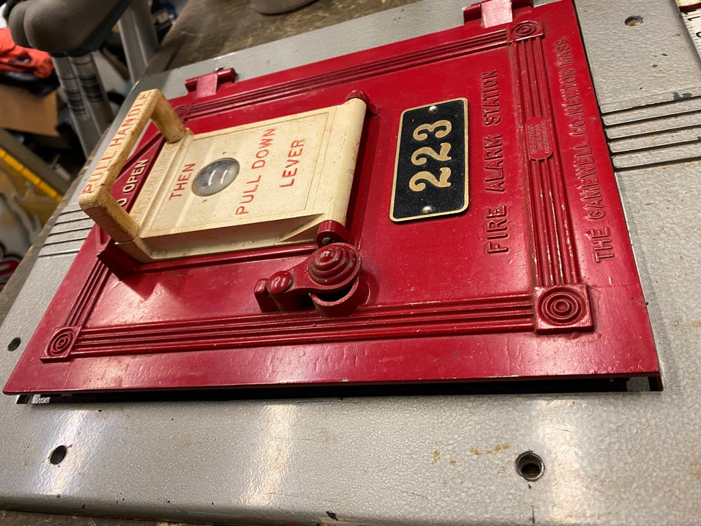 Vtg Gamewell fire Fighter alarm call box WalL mount School Pull Station Collectible Guy had it mounted on his wall in his study, had his wall safe behind it.... thought that was a pretty cool idea! He was really proud to show it off....