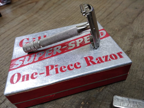 ***PLEASE LOOK AT ALL THE PICTURES AND ASK QUESTIONS BEFORE BUYING*** This is a Vintage Gillette Super Speed Safety Razor (No Date Code) TTO DE w/Original Box Blades Made in USA!! *** The pictures are a substantial part of the description so please examine all the photos and contact me if you have any questions. We will be happy to save you shipping costs by picking this up at our shop. Thank You 090625-04-RK