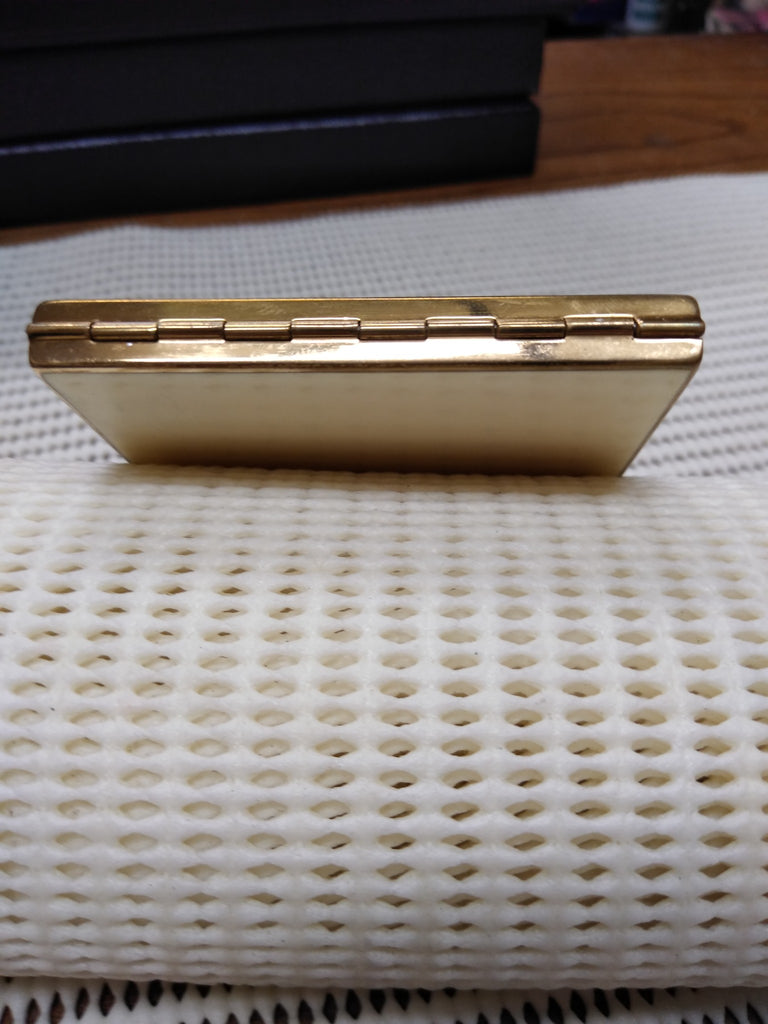 The case opens and closes very securely and the hinge is nice and straight. This Very Nice Compact was recently acquired from the estate of a long time collector so check out our other listings for many more items from this collection. The pictures are a substantial part of the description so please examine all the photos and contact me if you have any questions. We will be happy to save you shipping costs by picking this up at our shop. Thanks for looking.