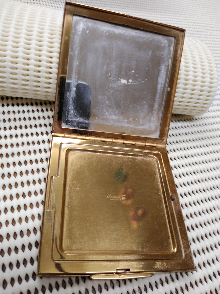 ***PLEASE LOOK AT ALL THE PICTURES AND ASK QUESTIONS BEFORE buying*** This is a Vintage Henriette Compact with the inscription "Dieu Et Mon Droit" which means (God And My Right), made in the USA. This is in very good condition with minimal signs of wear and needs cleaned. selling off a nice collection of ww2 sweetheart compacts & bracelets... check our other listings!!