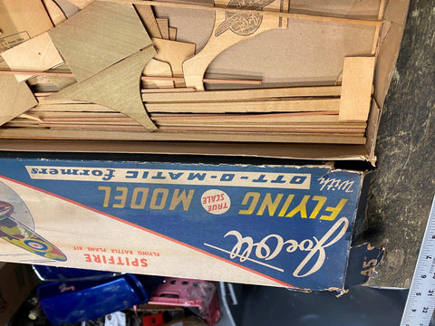 - Vtg Joe Ott Flying Battle Plane Kit 45" Spitfire Wood Model Airplane Large Box! looks pretty complete box is pretty worn.... took pics of contents pretty rare to find the 45" wing span kit!