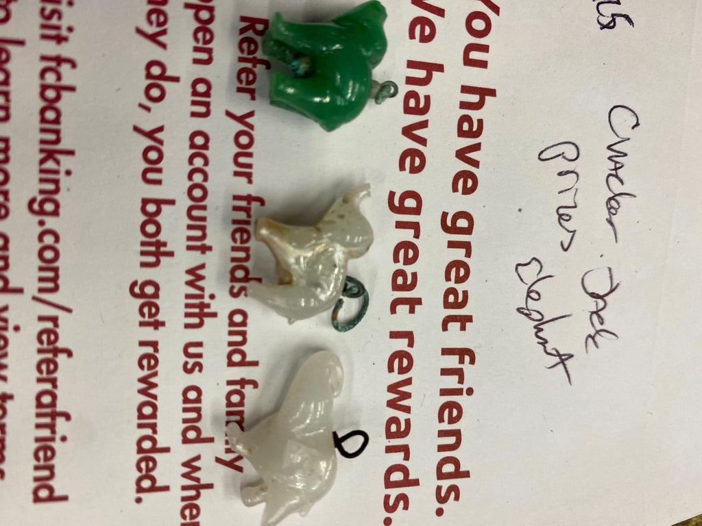 Vtg Lot Glass Cracker Jacks Prizes Tokens Charms Toys Elephant Gumball Collectibles! each one has a defect.... have a lifetime collection of cracker jacks were listing....
