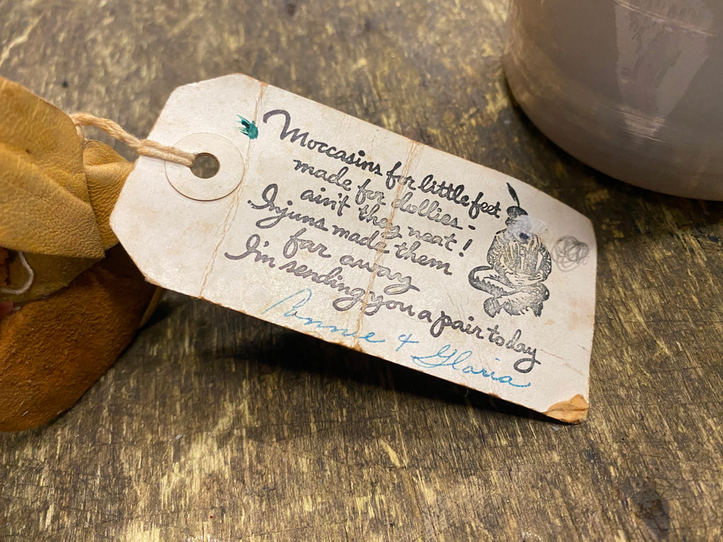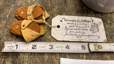 Vtg Miniature Souvenir Leather Moccasins Shoes Indian Toy Doll Collectible 50's .