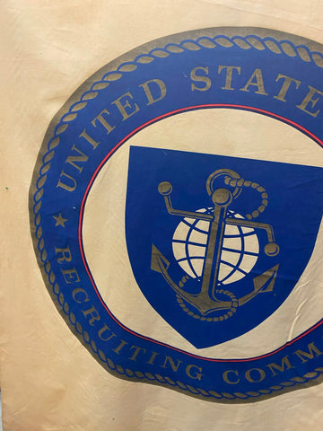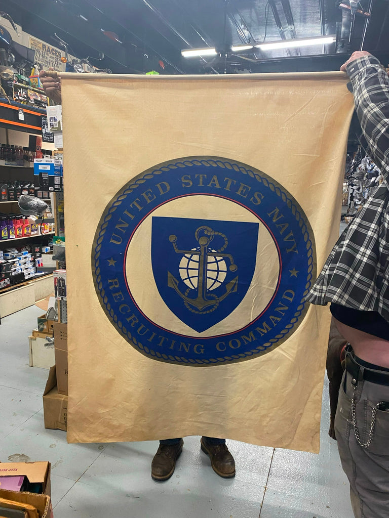 Vtg Navy Recruiting Banner. Roll up Flag. USN 48x67 USA. Collectible. Man Cave. Sign. One of our customers had this, his dad was a recruiter, guessing its from the 50's. Pretty cool piece, great wall hanger! Comes with rod & fancy string. Could save some shipping if we sent just the banner....