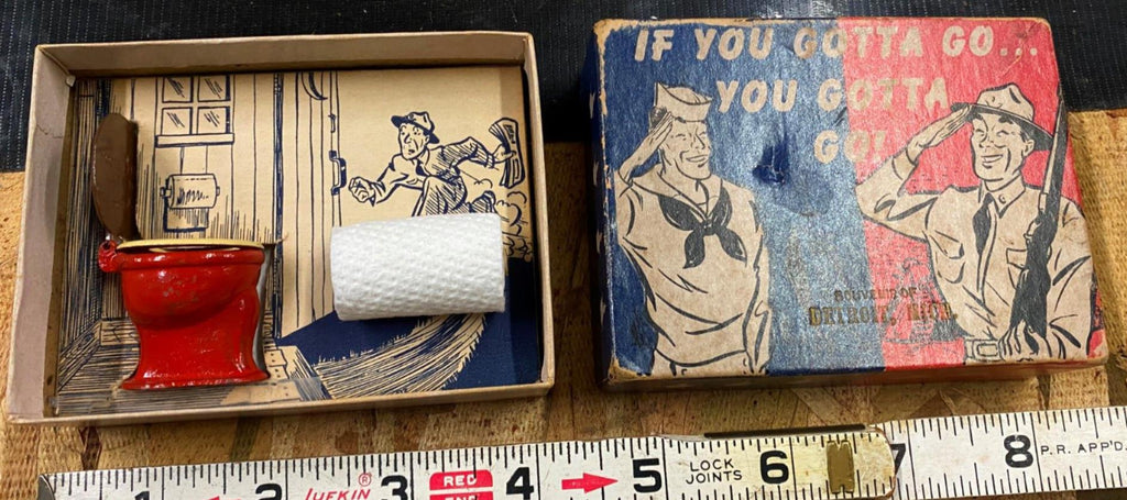 Vtg Novelty Gotta go WW2 Military Store Prank Soldier Army 1941 US Souvenir Shop came with a bunch of WW2 stuff nice little trinket miniature toilet set! Great piece for the display!!