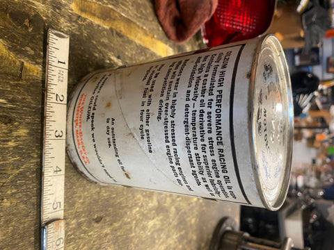 Vtg OILZUM HP RACING OIL Can Gas & Oil Advertising Full Indy Car Great Graphics!