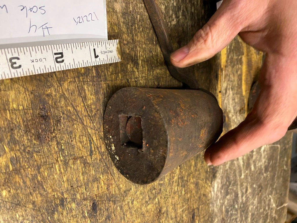 The weight is likely part of a balance or steelyard scale system, used for weighing various goods like cotton or tobacco in mercantile or farm settings.