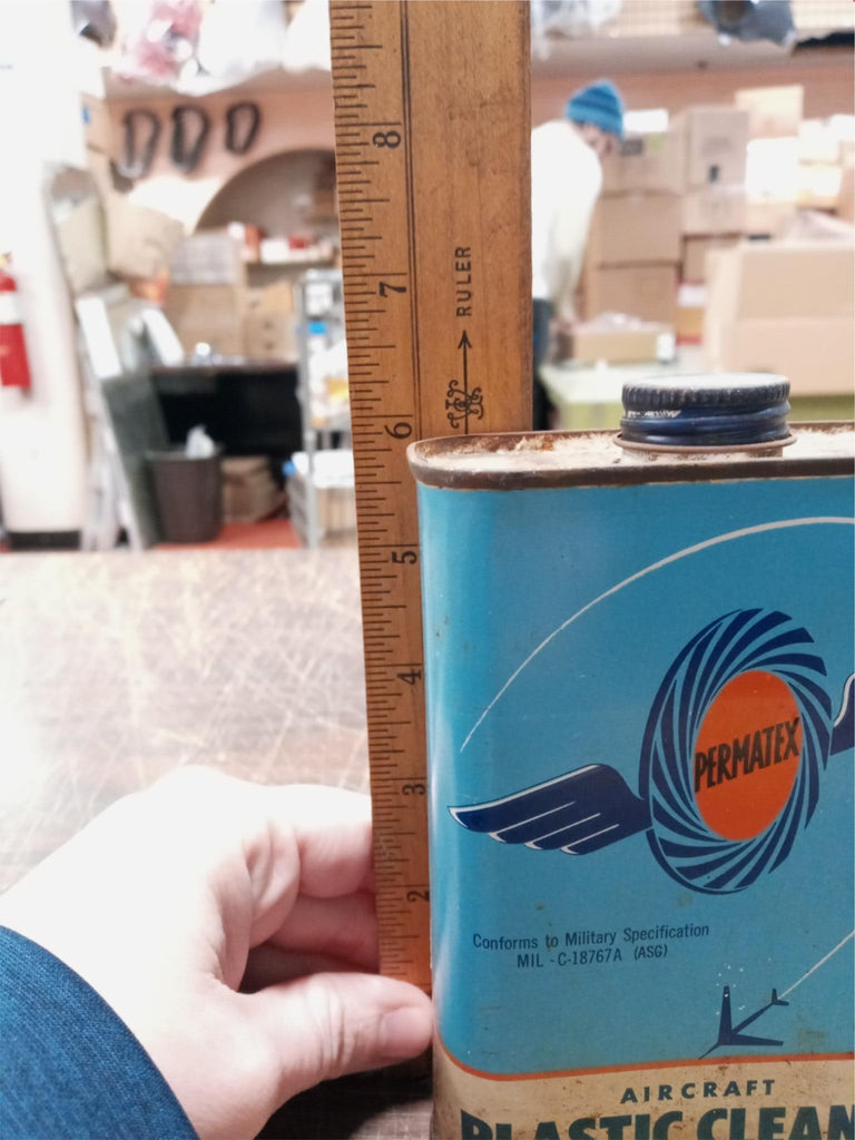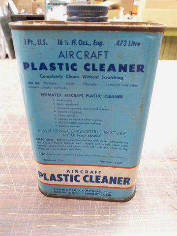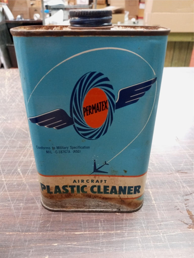 Vtg Permatex AirCraft Plastic Cleaner Full Plexiglas Airplane oil Can Tin Polish