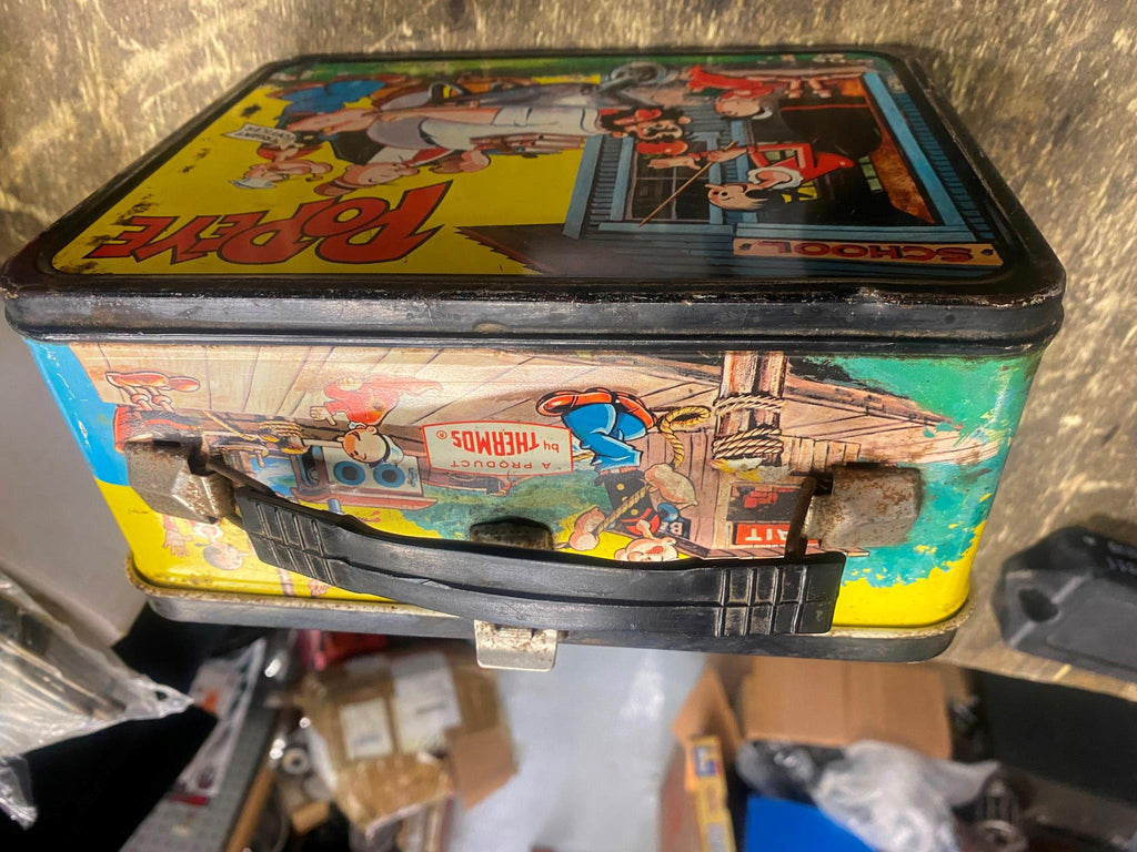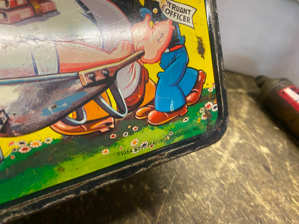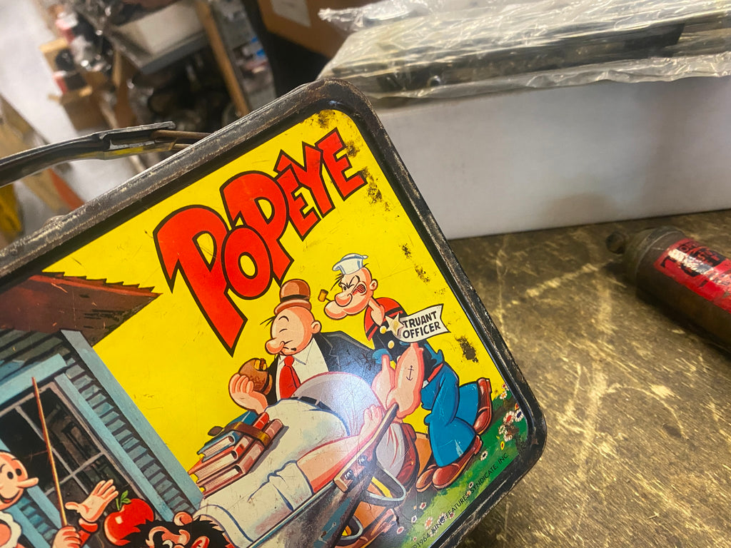Vtg Popeye the Sailor Man Metal Lunch Box 1964 King Feature Syndicate Cartoon   buddy of mine carried this to school back in the day, asked us to sell off some of his collectibles!
