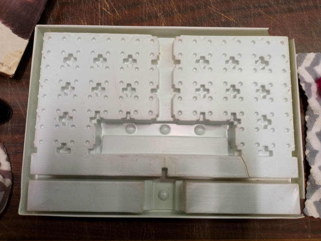 This game is used in really nice condition for its age however, there are a few small blemishes to some pieces such as broken pieces in some of the corners and connectors.