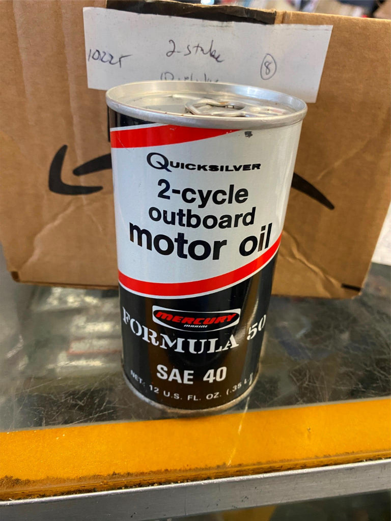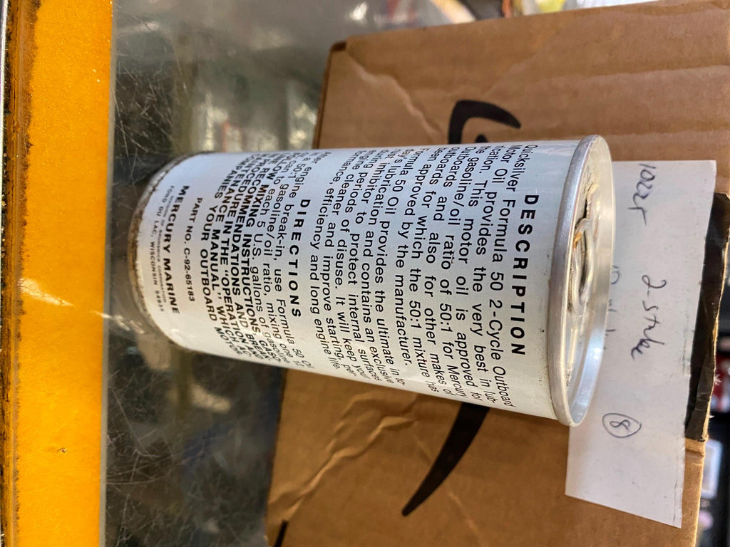 Vtg Quicksilver Formula 50 2 Cycle Outboard Motor Oil Tin Can Marine Boat Full! great piece for the oil gas collector!