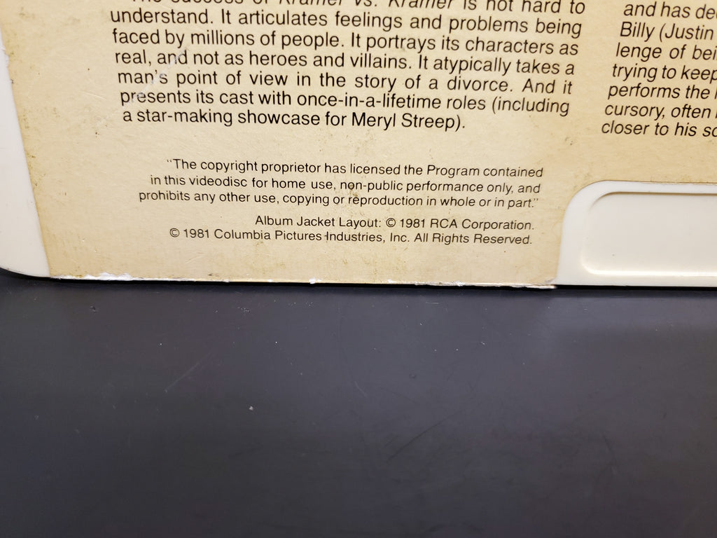 Vtg RCA SelectaVision CapacitanceSystem Dustin Hoffman in Kramer Vs. Kramer Disc