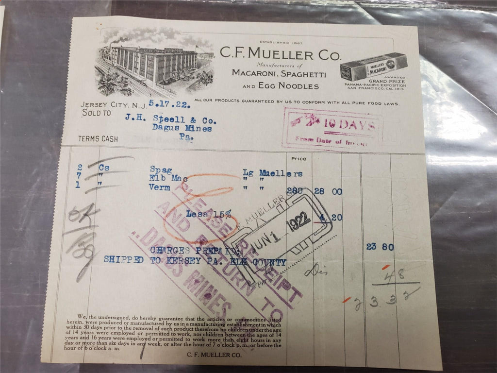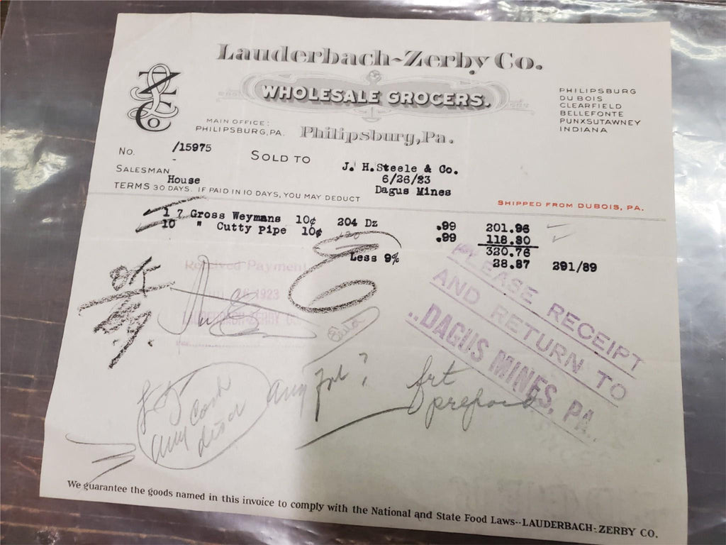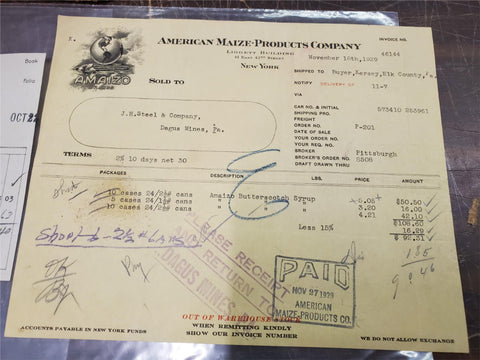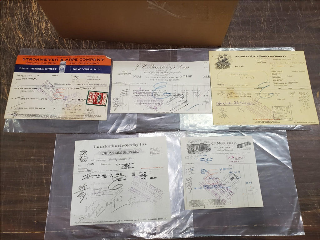 Vtg Receipts Ephemera American Maize Mueller Lauderbach-Zerby Beardsleys Strohme
