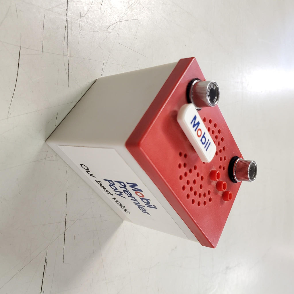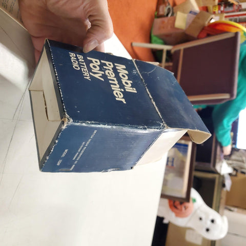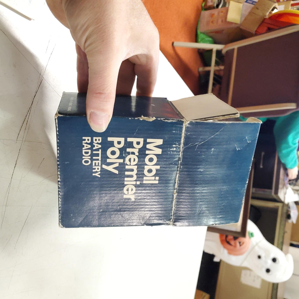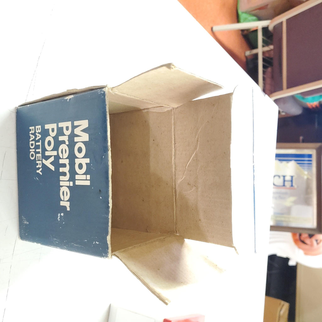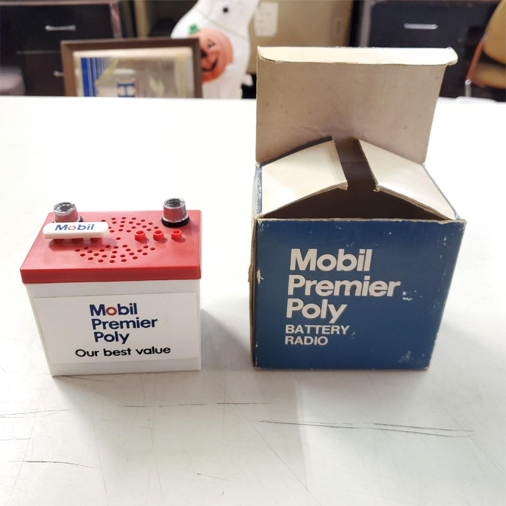 VTG Red White Bl Mobil Oil Premier Poly 9 volt Mini Battery Radio Ori Box 3324F Hong Kong.