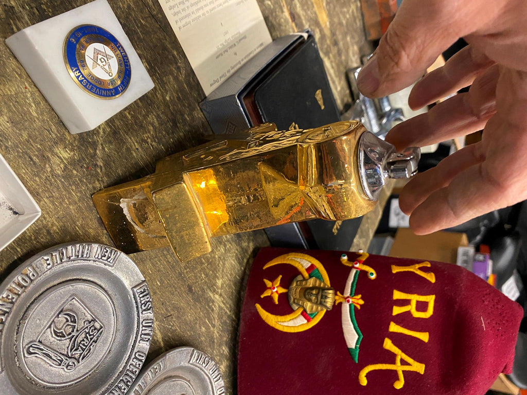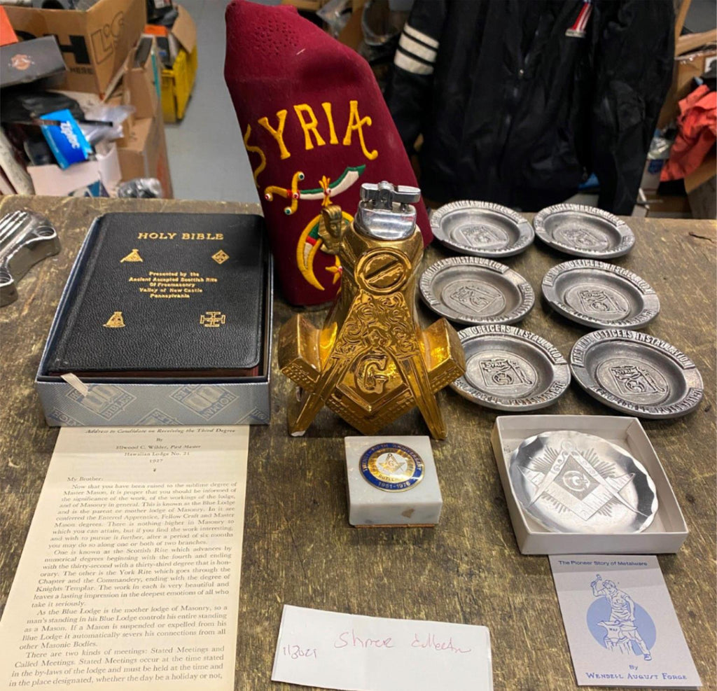 Vtg Shriner masons Fraternal Order Table Lighter PEZ AShtrays Syria Bible Collectible lot some damage on lighter (pictured) selling as pictured.