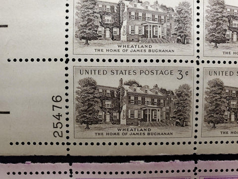 13.Wheatland The Home of James Buchanan 3 Cents Sheet (50 Stamps)-Serial #25476