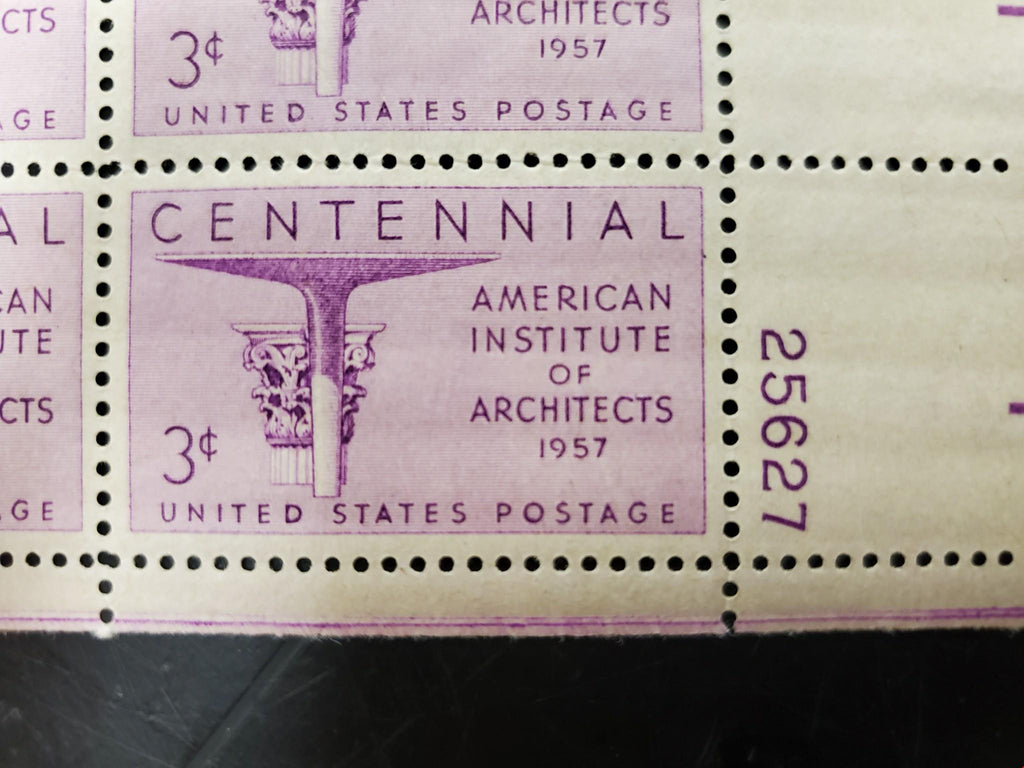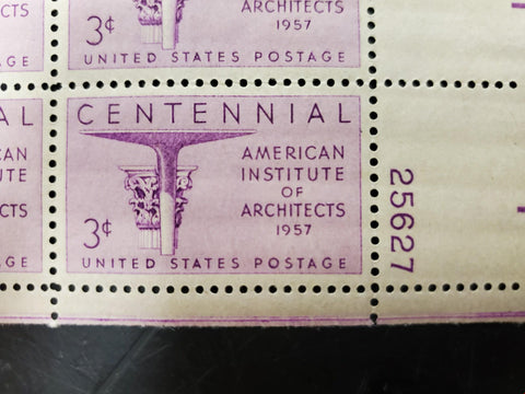 18. Centennial American Institute of Architects 1957 3 Cents Sheet (50 Stamps)- Serial #25627