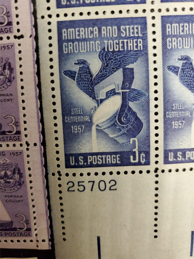 1. America And Steel Growing Together Steel Centennial 1957 3 Cents Sheet (50 Stamps)- Serial #25702