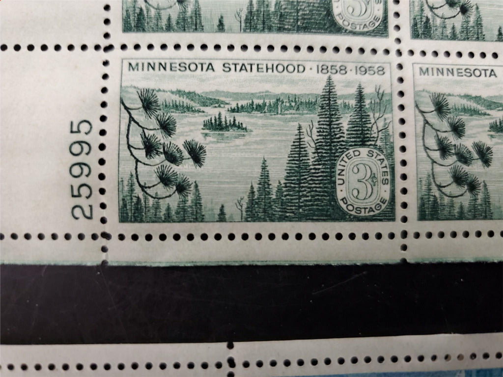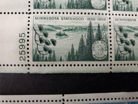 9.Minnesota Statehood 1858-1958 3 Cents Sheet (50 Stamps)-Serial #25995