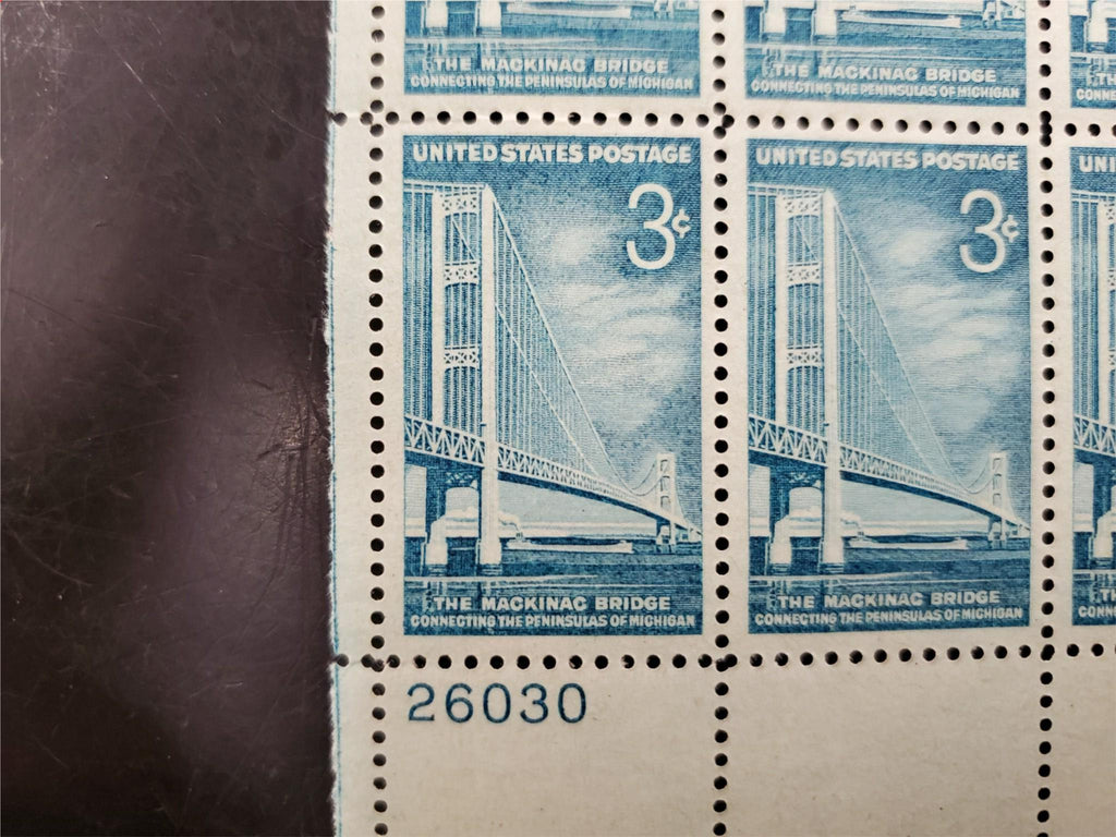 12. The Mackinac Bridge Connecting the Peninsulas of Michigan 3 Cents Sheet (50 Stamps)- Serial #26030