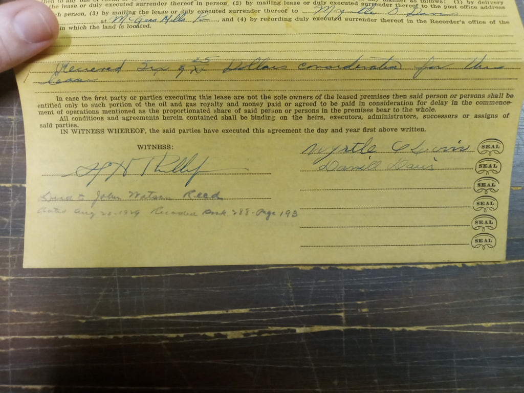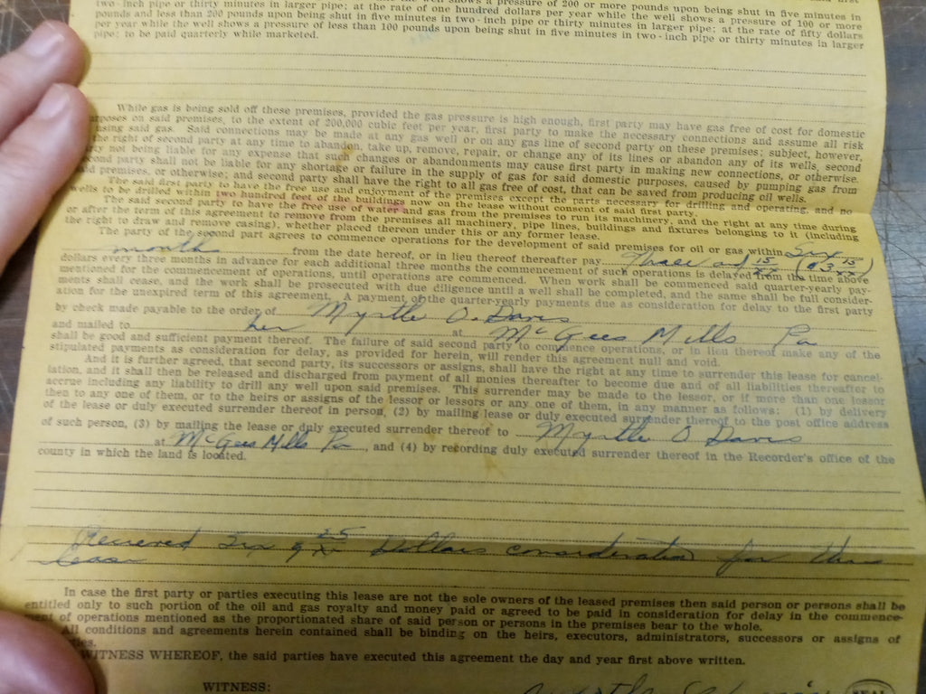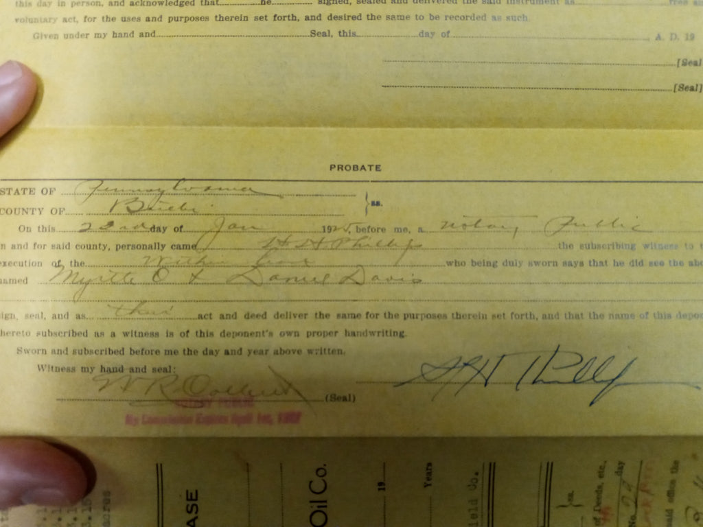 Vtg T.W Phillips Gas & Oil Lease Clearfield County January 1925 John Watson Reed