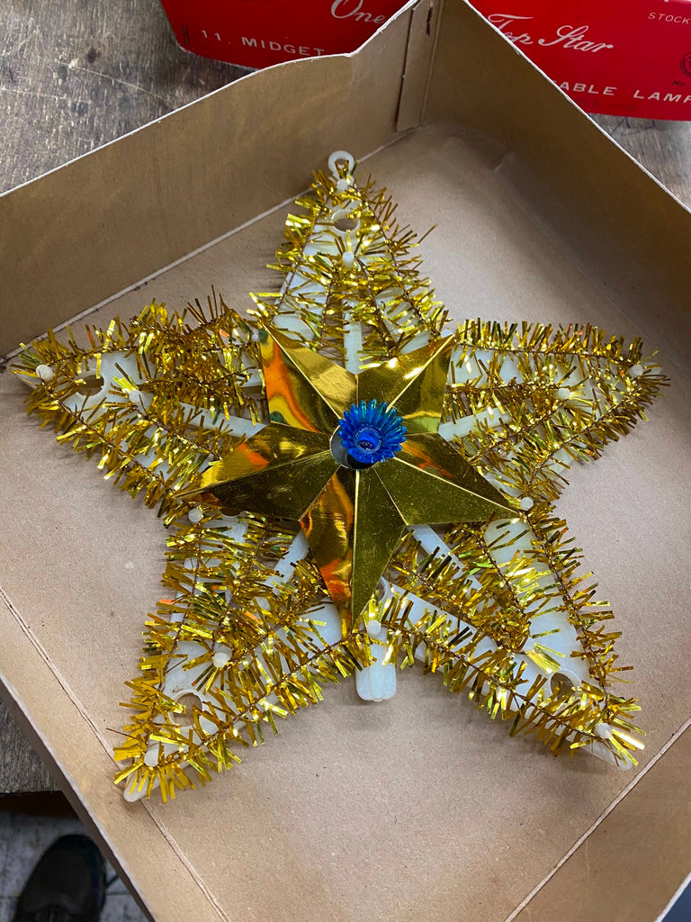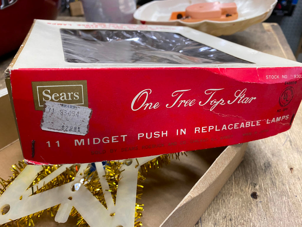 Vtg Tree Top Star Light up Christmas Decor Sears 1970's Tin Ornament Xmas