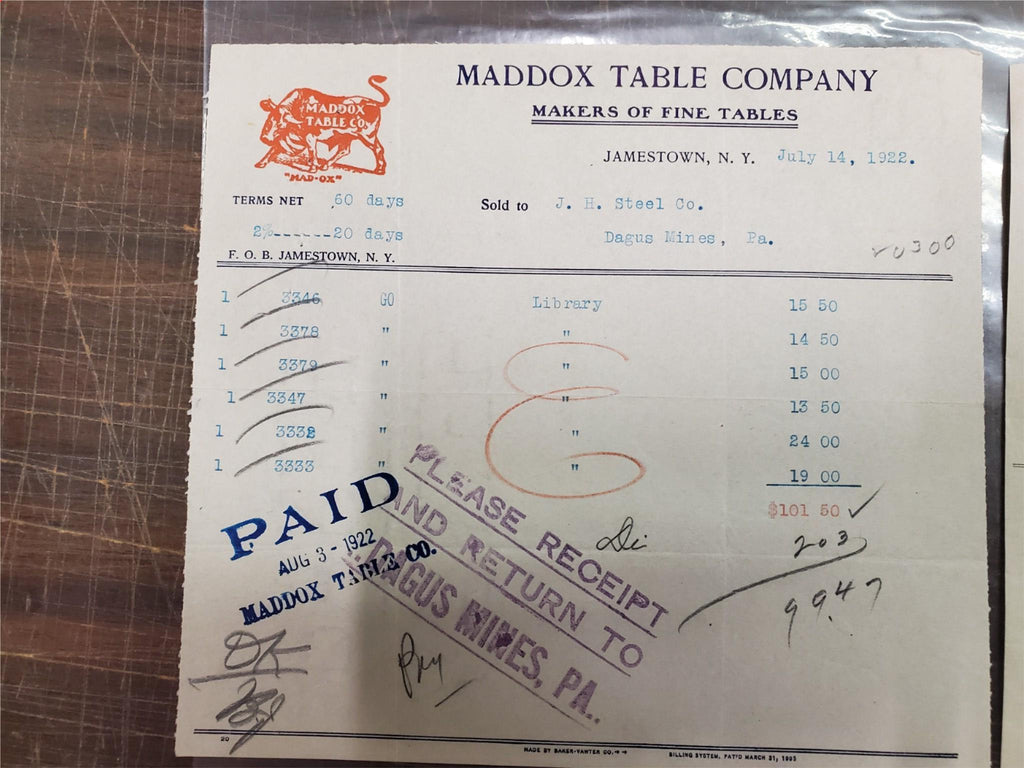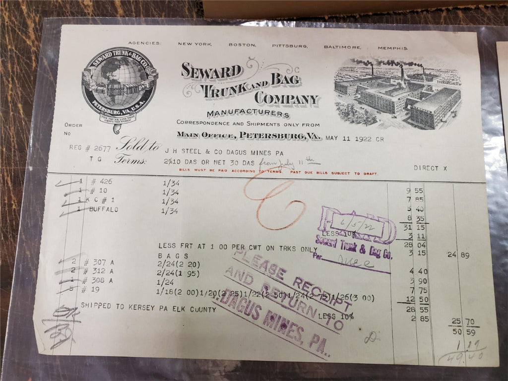 VTG Receipts Lot Miller Hardware Guller Seward Trunk & Bag Maddox Hyde-Murph