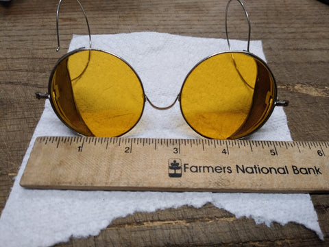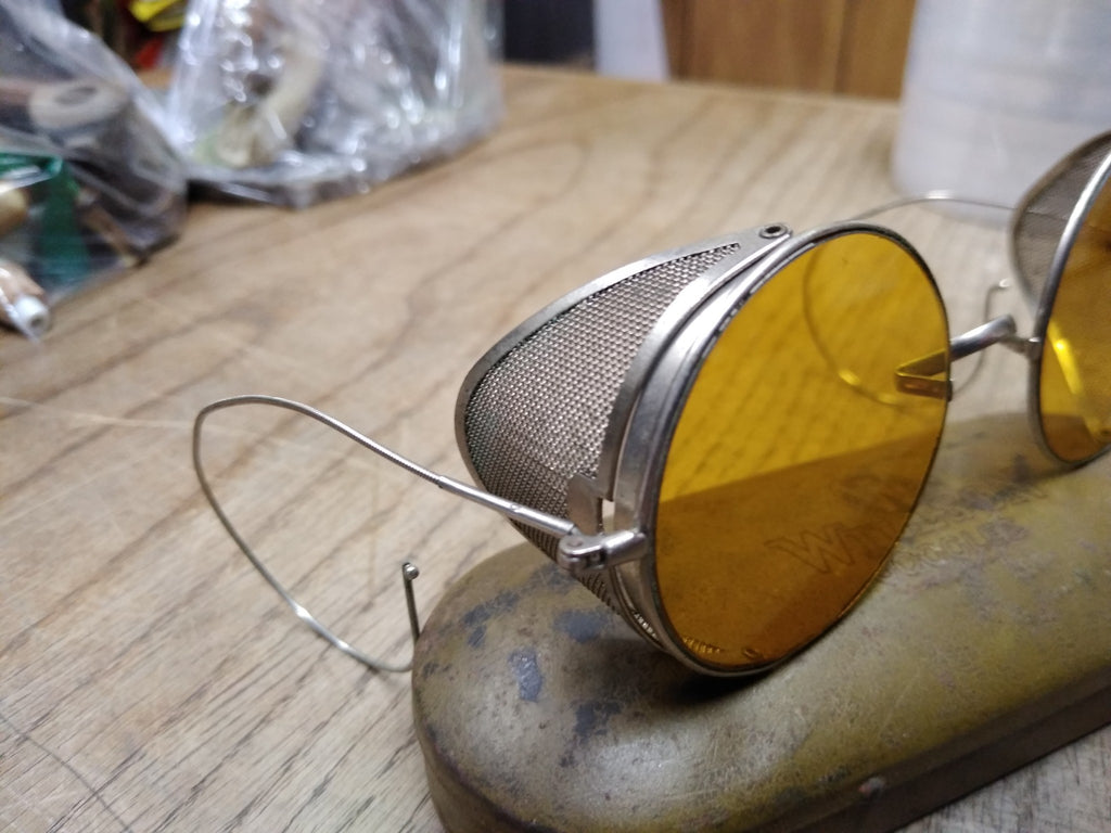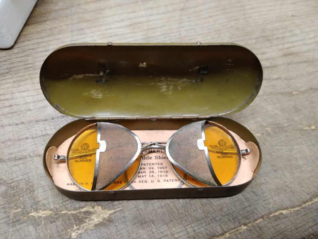 ***PLEASE LOOK AT ALL THE PICTURES AND ASK QUESTIONS BEFORE BUYING*** This is a Vintage Wilson Yellow Tint Round Lens Side Shield Goggles #N86 Safety Glasses Last Patent 1918 with Case in Very Good Condition! *** The pictures are a substantial part of the description so please examine all the photos and contact me if you have any questions. We will be happy to save you shipping costs by picking this up at our shop. Thank You 041525- RK-01