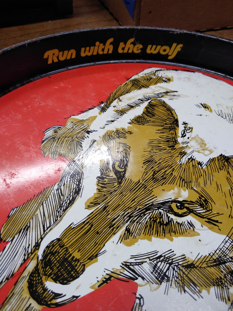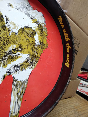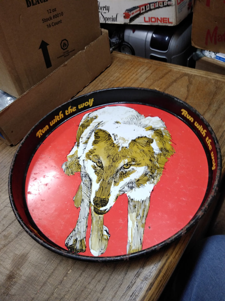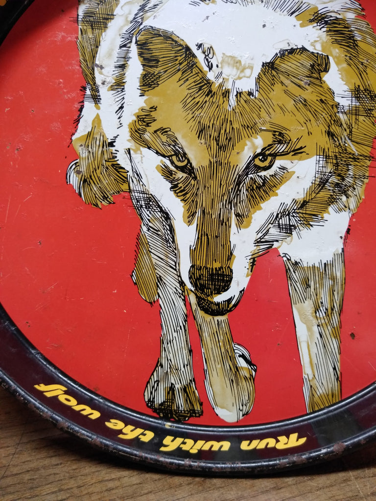 This is a Vintage Wolf's Head Oil Metal Serving Tray, 12 Inch Breweriana Gas and Oil Collectable Great for Your Man Cave ! The pictures are a substantial part of the description so please examine all the photos and contact me if you have any questions. We will be happy to save you shipping costs by picking this up at our shop. Thanks for looking. 062023- RK-02