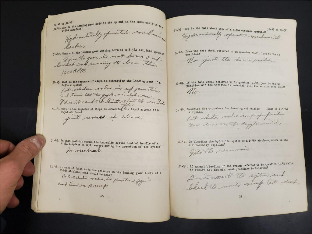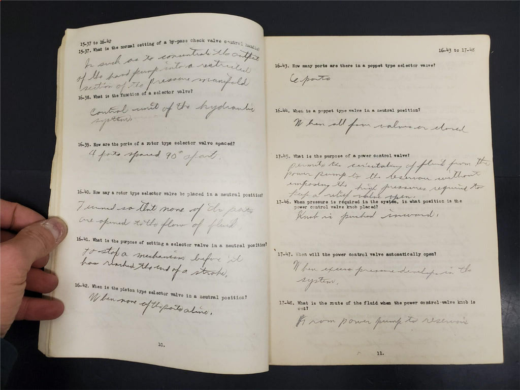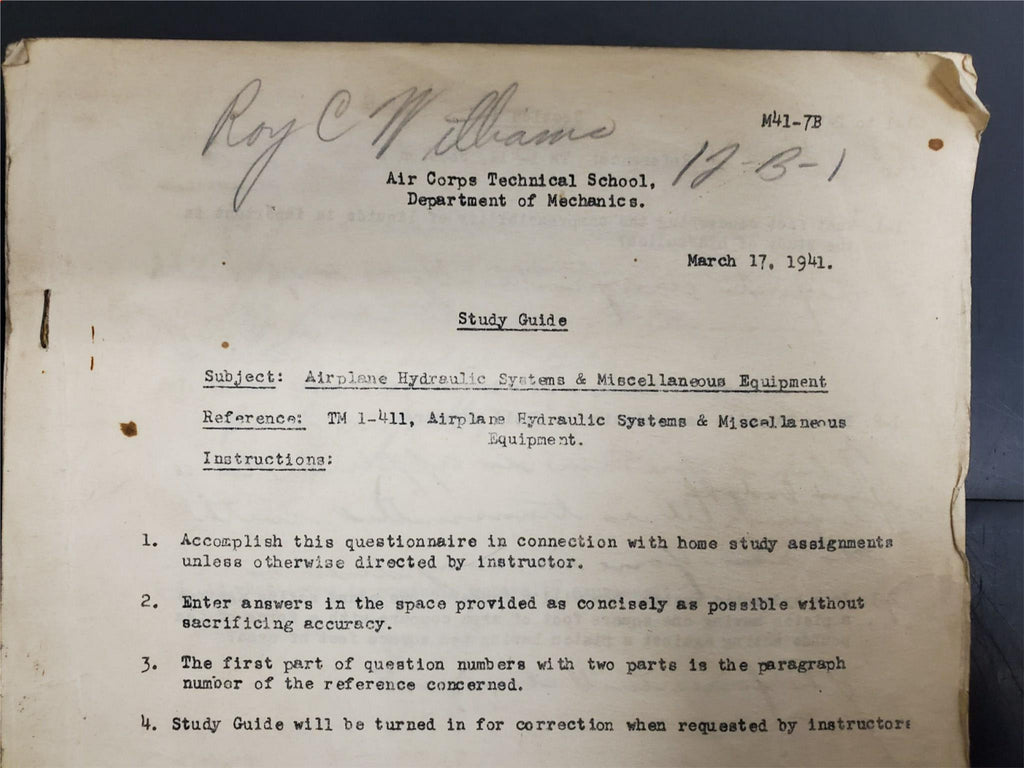 Very cool item for the WW2 item collector. Study guide belonged to Roy C. Williams. Entire study guide is filled out.