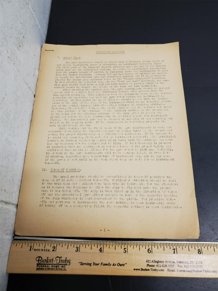 VTG WW2 Era Army Air Forces Instrument Aircraft Take-Offs Instruction Booklet