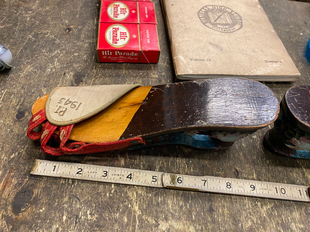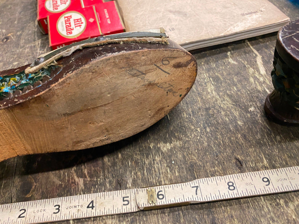 Vtg WW2 Handcrafted Wood Womens Shoes Sandals Platform Scene Birds Sweetheart Islands! Never seen a set before, guessing soldier brought them back from overseas after the war for their sweetie!! Great display! size 6 she must ave been teenie!! wonder if she waited for him!!??