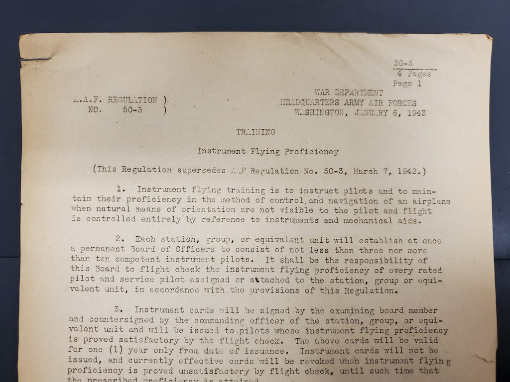VTG WW2 War Department Army Air Forces Training Flying Proficiency USA Military