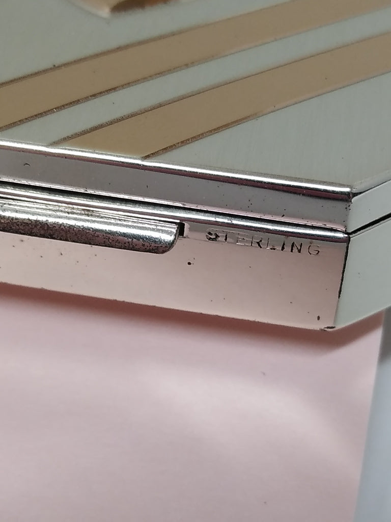 Vtg WW2 Sterling Silver US Navy Sweetheart Gold Accent Octagonal Compact Nice