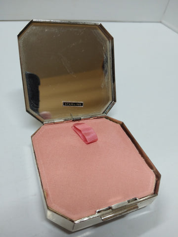 ***PLEASE LOOK AT ALL THE PICTURES AND ASK QUESTIONS BEFORE BuyING*** This is a Vintage WW2 Era Sterling Silver U.S. Army Powder Puff Sweetheart 24K Gold Plate accent, Octagonal Shaped Compact.