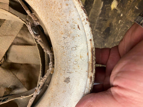 WW2 Civil Defense Air Raid Wardens Helmet 40's Military WW11 Liner US Govt Property    nice survivor!  steel helmet ww2 era!