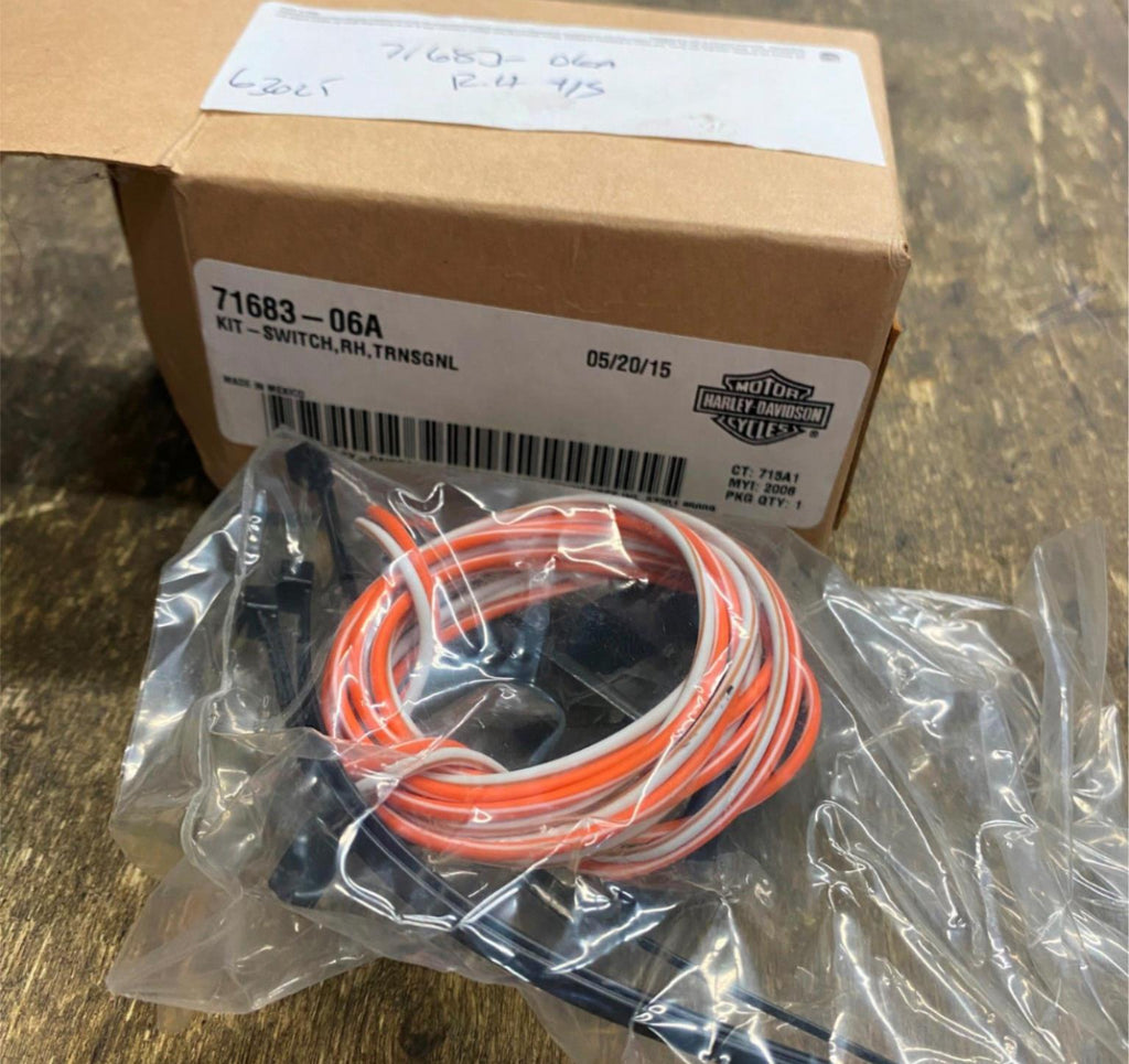 The kit contains the internal switches and wiring for the right-side control pod on the handlebars, which operates the turn signal.