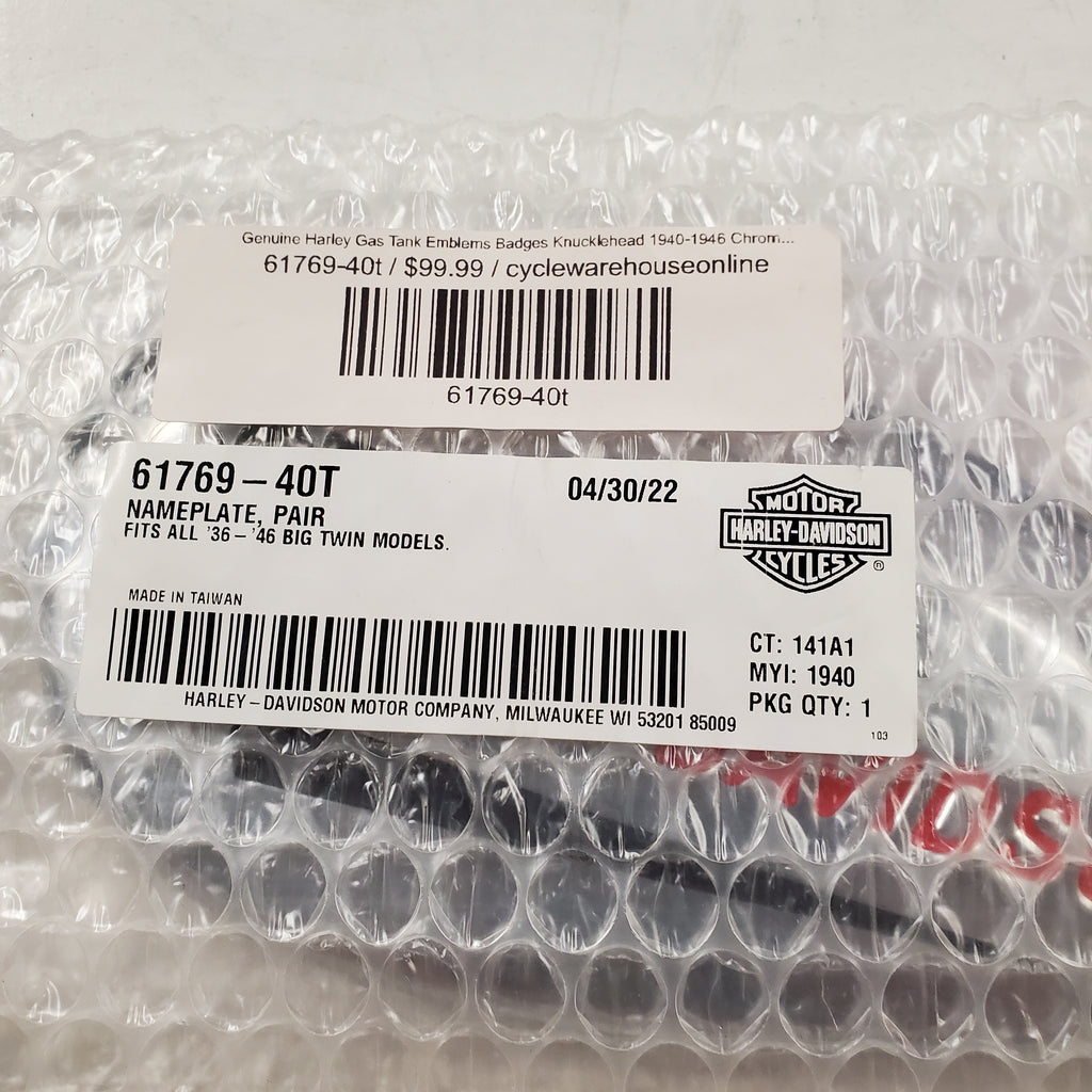 Genuine Harley Gas Tank Emblems Badges Knucklehead 1940-1946 Chrome red OEM New!