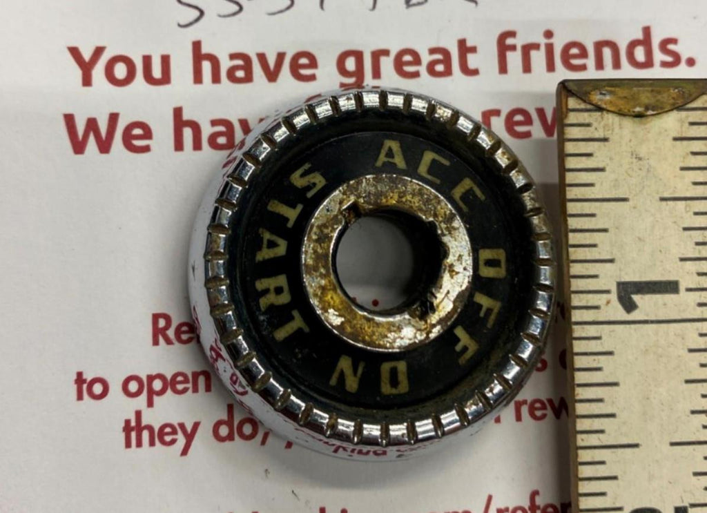 Ignition Switch Emblem Bezel 1955-56-57 T-bird Thunderbird OEM Ford acc on off cleans up nice, has some tape glue on it. make sure it fits your application before purchasing
