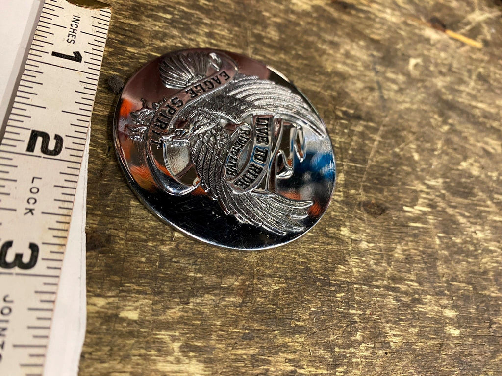 Vtg Live To ride Eagle Emblem Medallion Harley Sissybar Battery Cover Motorcycle
