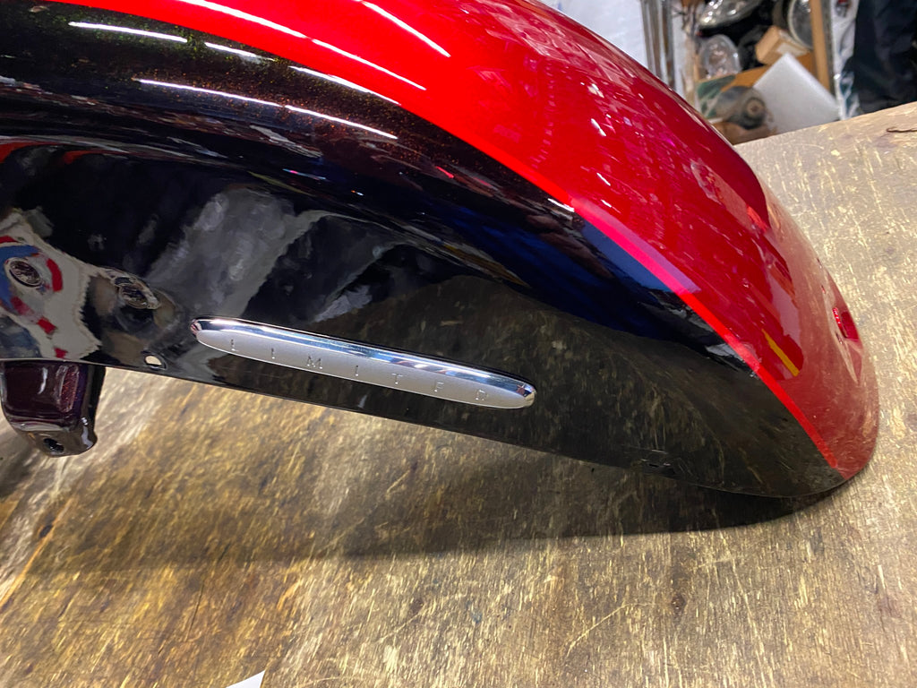 Ember Red Sunglo Merlot Front Fender Emblems Harley Touring Limited FLH Glide 2013 some damage good for a rider.....kink on side, dent on top pretty sure thats the correct name for color...