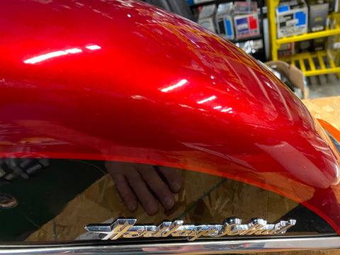 Merlot Red Front Fender Harley Heritage Softail FLSTC 2012 Two tone Emblems Trim nice fender! may have some smalls have matching rear listed also..