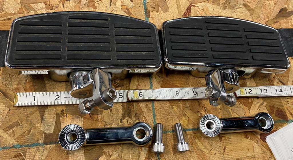 Mini Adjustable Floorboards Harley Highway Pegs Passenger Driver Softail Dyna Sportster Fxr Touring std male type peg mount can run short like pictured or put extension in them can turn forward, backward up or down like pictured