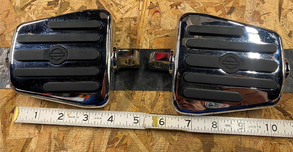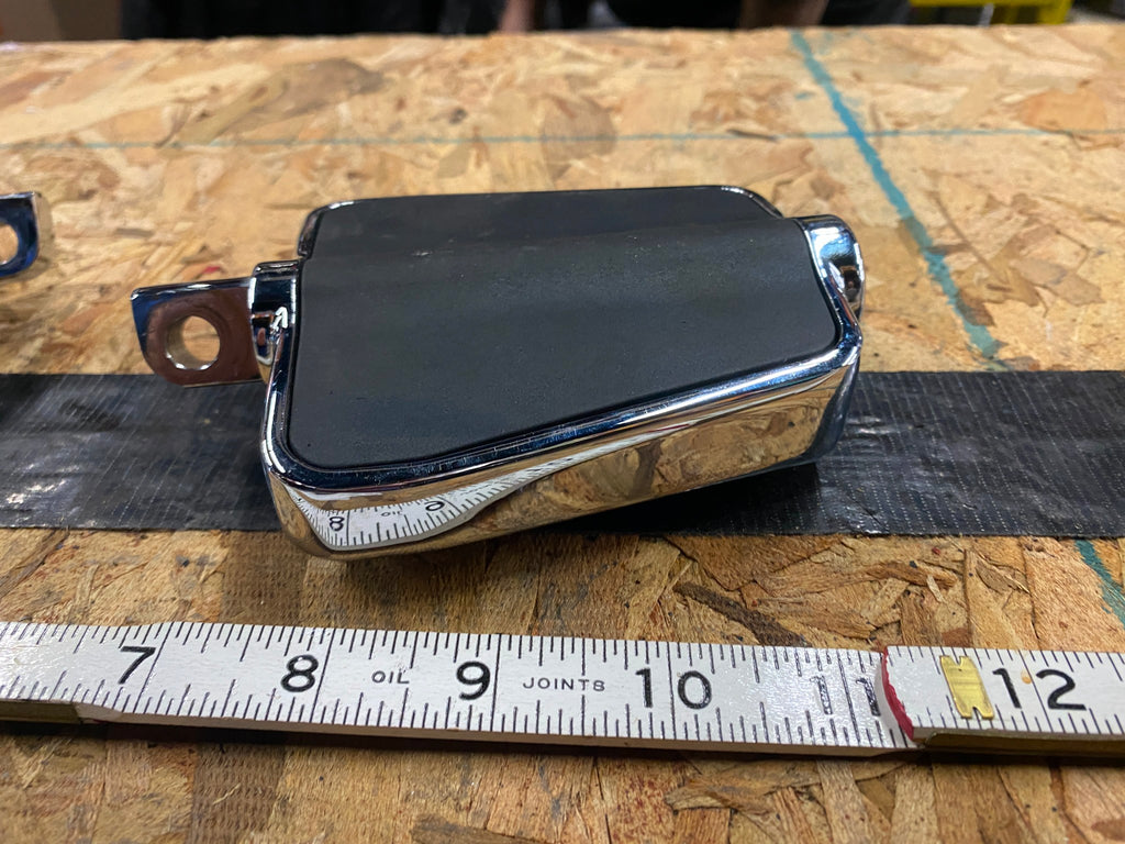 OEM Harley Mini Footpegs Floorboards Highway Softail Sportster Chrome rubber FLST FATBOY ETC std male mount nice shape! Factory pegs.