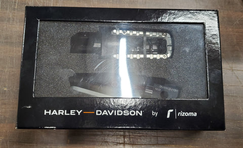 • The design features a subdued black-on-black finish with minimal lasered H-D and Rizoma logos.
