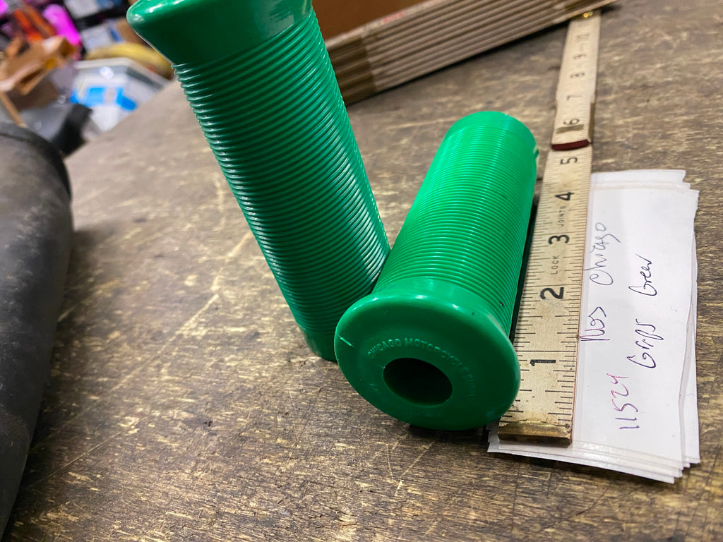 NOS Vtg Cicago Grips Green Harley Knucklehead Panhead UL flathead Indian Chief! each side is 1 1/8 hard plastic.....