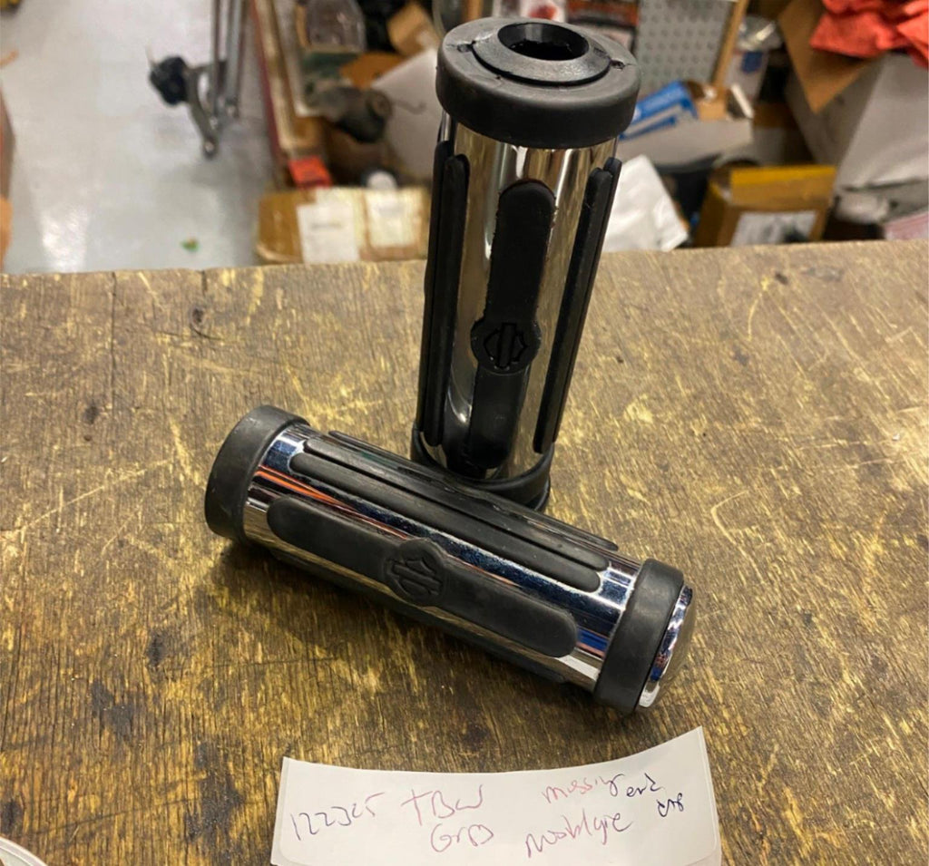 OEM Harley Grips Nostalgic TBW Touring FLH Glide Ultra Classic Chrome Rubber FOR-THROTTLE BY WIRE! missing an end cap