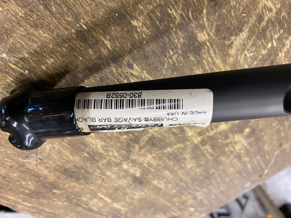 The 1-1/4" Chubby® Handlebar in Savage satin black is built 25% thicker than standard bars for unmatched strength. Precision-machined at control mounts, it ensures a flawless fit and striking appearance. Its fluid bends are engineered for ultimate comfort and control, compatible with hydraulic clutches, stock and custom controls, and most risers and clamps. Featuring polished welds and diamond knurling, it supports both Throttle-By-Wire and cable setups. Proudly made in the USA, it works with H-D® heated grips but is not compatible with stock risers and clamps on 883C/1200C or ’24 Road Glide/Street Glide models.