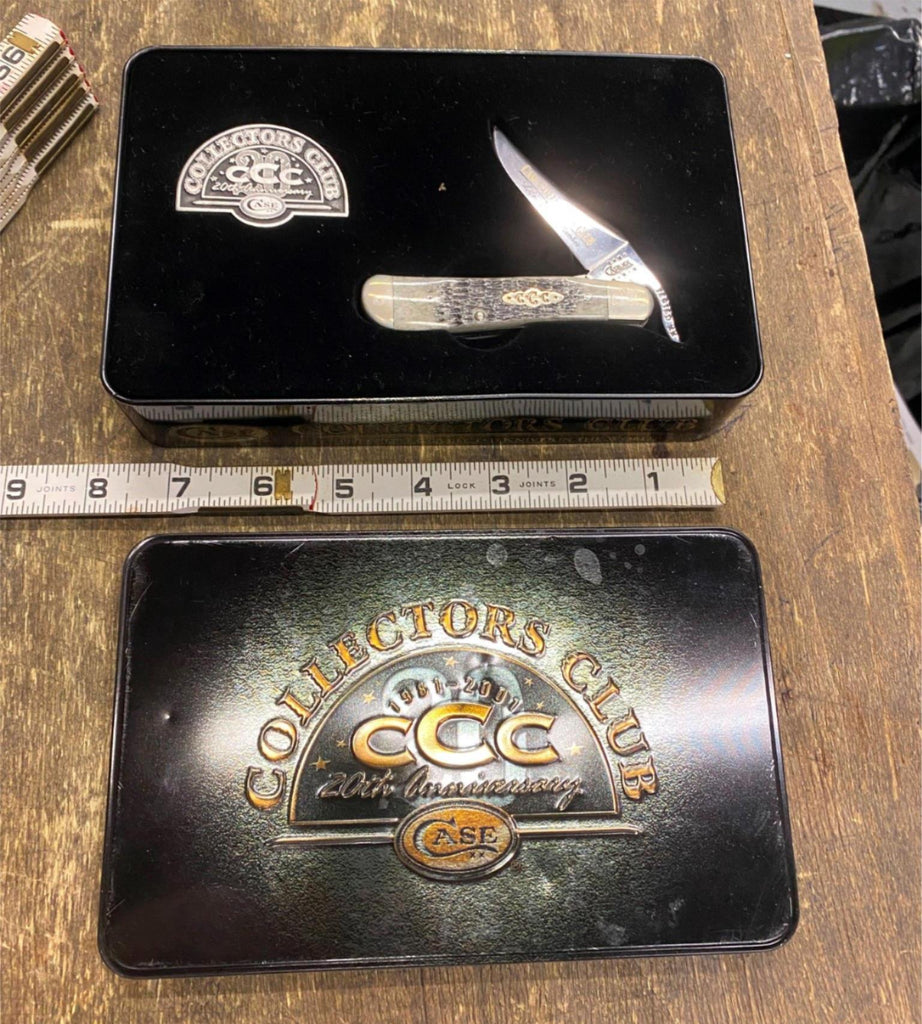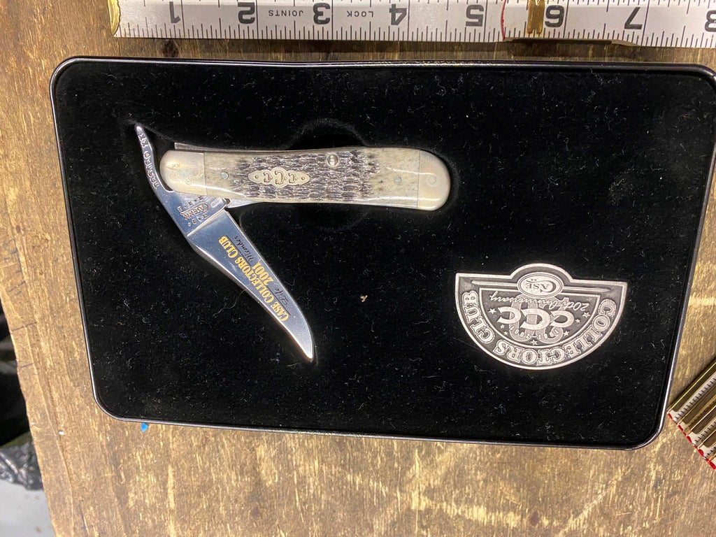 2001 Case XX Russlock 61953 Pocket Knife w/ Tin Collector Set Vtg Folding Single Blade.... new in box!
